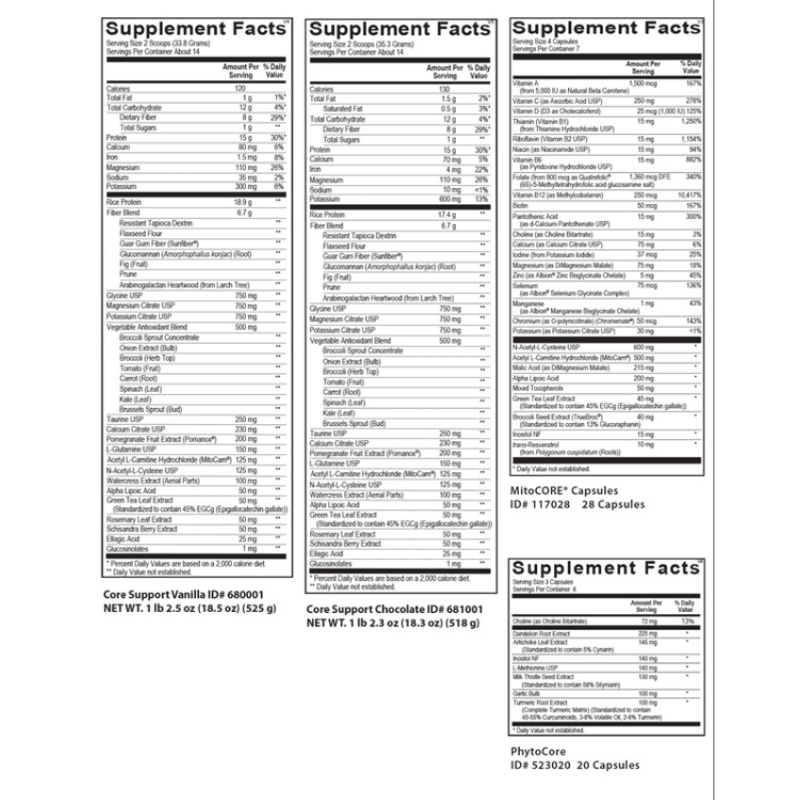 Core Restore® combines three formulas that work together to support your body’s natural biotransformation process and elimination pathways. It also includes key nutrients, plant compounds, and a source of easily digested hypoallergenic protein to help fuel that process.
