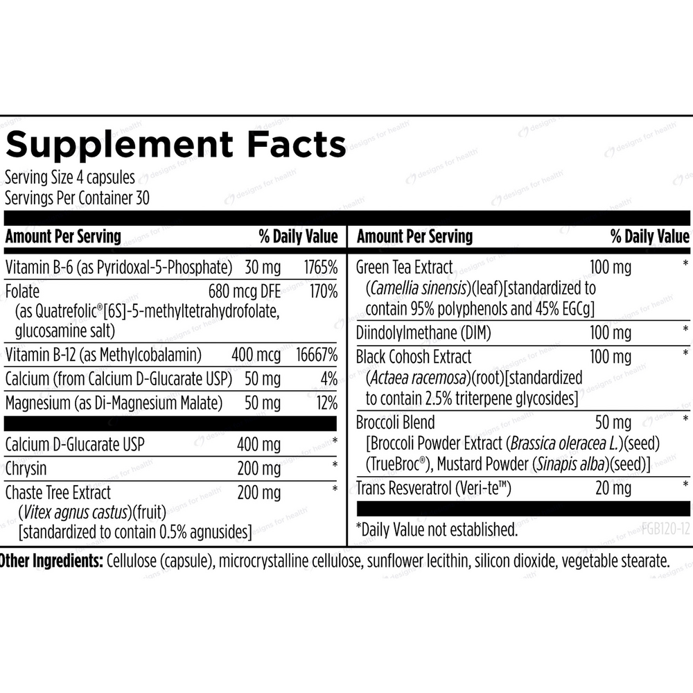 FemGuard+Balance™ supports classic herbal hormonal balancing in the form of vitex, polygonum and black cohosh, along with DIM and chrysin for protection and support of beneficial estrogen aromatase activity. Calcium-D-glucarate promotes the proper elimination of excess estrogens. Resveratrol and EGCg from green tea are included for maximum antioxidant protection. Vitamins B6, B12, and folate promote proper cell diff erentiation. Magnesium and calcium are also included to help support bone and hormone health.